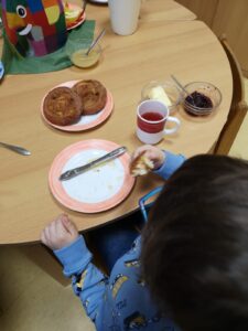 Heute Morgen überraschte uns unser Bäcker mit leckeren Apfelberlinern für die Kinder.