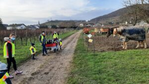 In den Weinbergswegen haben wir ein Wettrennen gemacht und haben uns große und kleine Veränderungen in der Natur angeschaut. So hatten wir Zeit, die kleinen Steine auf dem Weg zu bestaunen oder sind in Pfützen gesprungen.