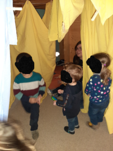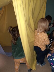 Mit viel Kreativität und auch einiges an Geschick, um die Wäscheklammern zu öffnen, haben die Kinder eine Kuschelhöhle gebaut.